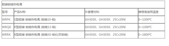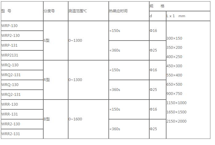 鉑銠鉑熱電偶詳細參數:
