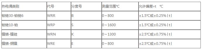 無固定裝置熱電偶溫度測量范圍和允許誤差