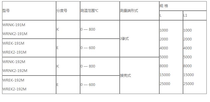 鍋爐熱電偶型號(hào)及規(guī)格參數(shù)