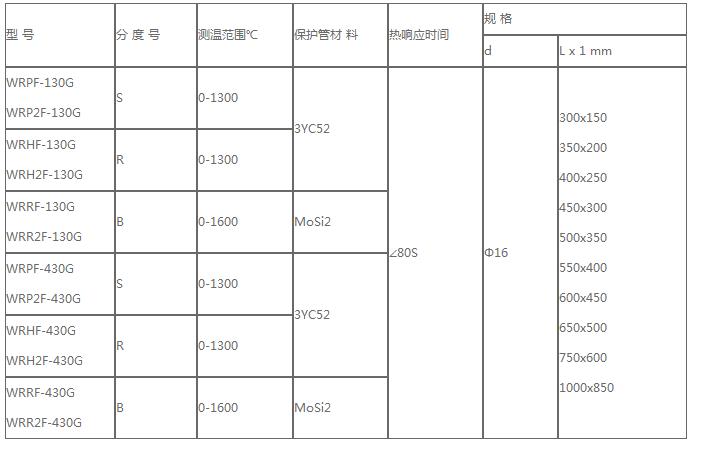 耐腐熱電偶型號及規格
