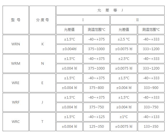 4、電站專用熱電偶測(cè)量范圍及允差