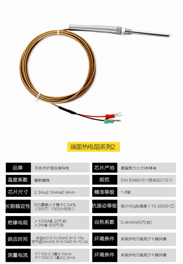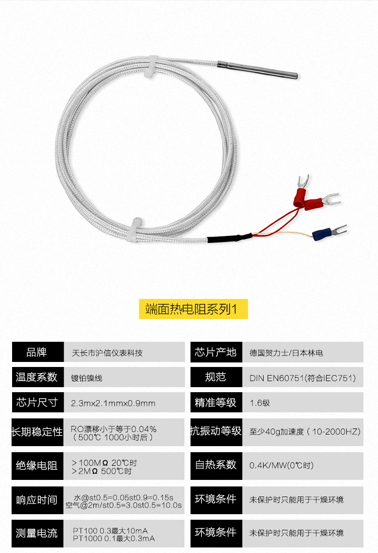3)端面 pt100鉑熱電阻型號WZPM-201端面熱電阻感溫元件由特殊處理的電阻絲材繞制,緊貼在溫度計端面。它與一般軸向熱電阻相比,能更正確和快速地反映被測端面的實際溫度,適用于測量軸瓦和其他機件的端面溫度。