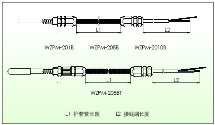 1)普通型 pt100鉑熱電阻型號 WZP 系列