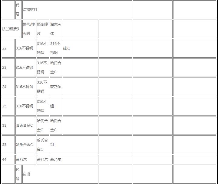 隔離膜片:316L不銹鋼,哈氏合金,蒙乃爾或鉭